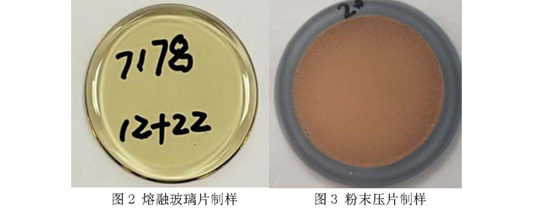 样品经熔融玻璃片法或粉末压片法制样,试样中各元素原子在波长色散X射线荧光光谱仪中经激发放射出特征X射线谱线。通过测量试样中目标元素的特征X射线谱线强度的有无进行元素的定性分析,通过强度的高低定量分析试样中各元素的质量分数。
