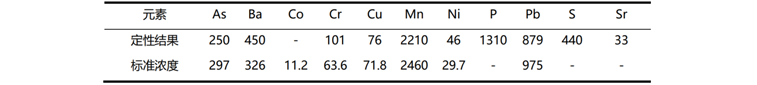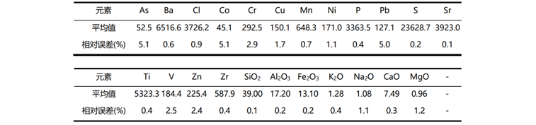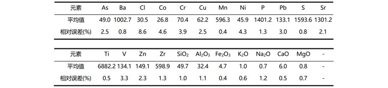 使用GSS和GSD系列标准物质,以压片法制样建立校准曲线。使用污染土壤标准样品GSB07-3273-2015进行了压片法精密度验证,对该样品连续测定6次,结果表明方法精密度良好。