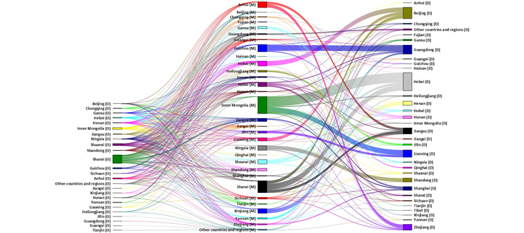 研究以2016年数据为例,发现电煤流在运输阶段造成了约1.2亿吨 CO2eq的省际碳足迹(主要是煤炭开采阶段的温室气体排放)转移,其中约8.1%在输电阶段又发生了二次转移。煤电流在输电阶段造成了约6亿吨 CO2eq的省际碳足迹(主要是煤炭发电阶段的温室气体排放)转移,约占煤炭发电碳排放总量的15%。通过碳足迹溯源揭示出:随电煤流转移到北京的碳足迹中约70%来自山西,从而准确地识别了山西能源对北京的贡献程度;电煤流碳足迹在二次转移中出现了“回流”到原产煤省、以及两产煤省“互流”的现象,暗示煤电相互博弈的复杂局面等。这对建立科学明确碳排放补偿机制(如资金或技术支持)、从全国一盘棋的角度处理好我国发展和减排的关系、整体和局部的关系等具有重要的指导意义。