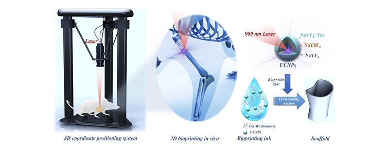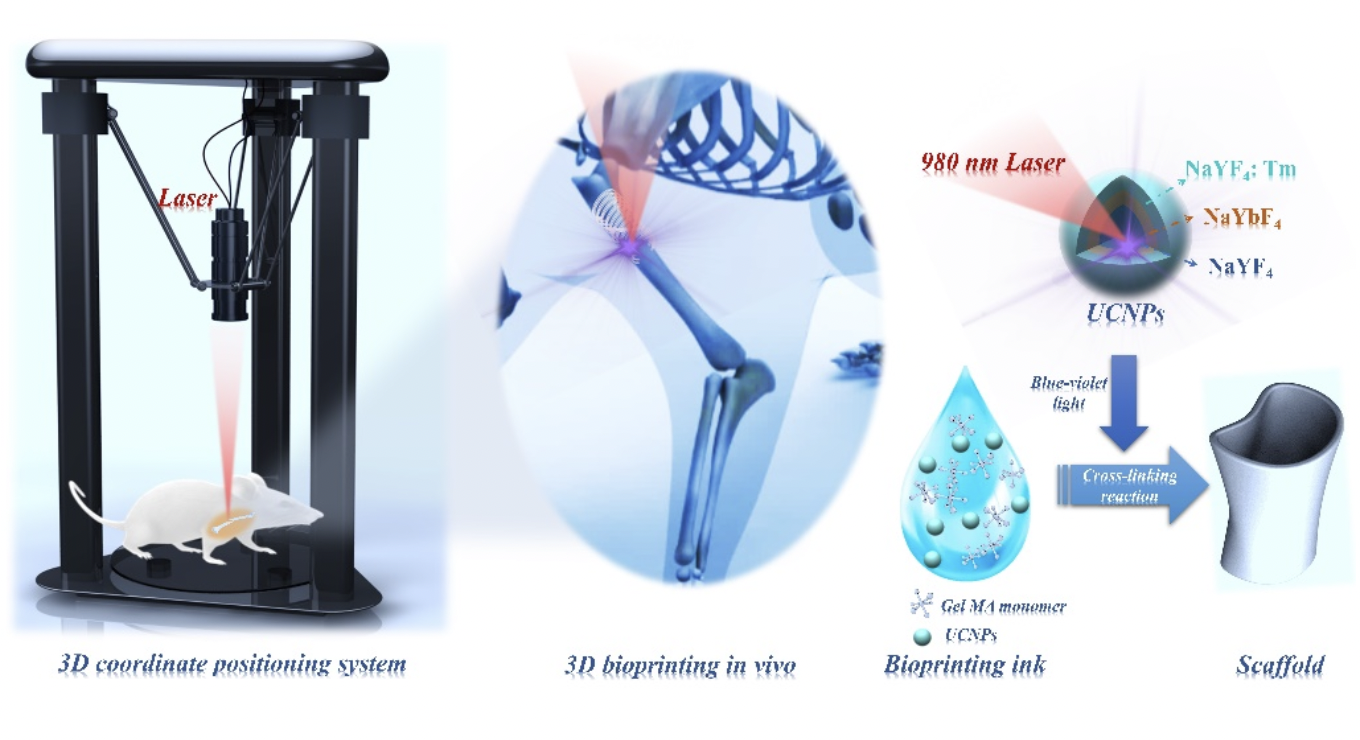 上转换氟化物纳米晶辅助3D生物打印技术用于体内骨折固定。