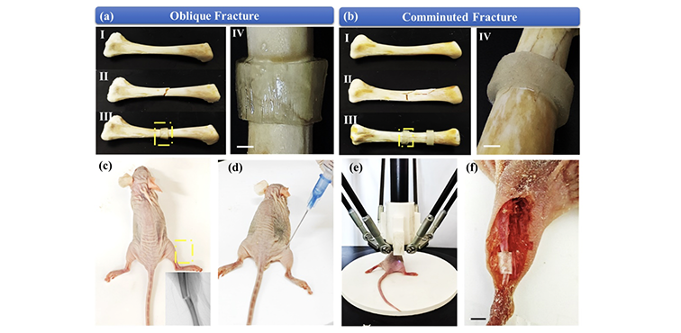 在此项研究中,团队成员成功在小鼠体内实现了无创骨折固定支架的3D成型,展示了一种全新生物医学材料的体内成型方式,在植入式医疗领域具有广泛的应用前景。