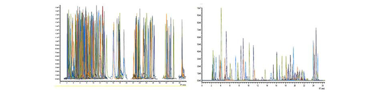 基于全谱二维液质建立的代谢组学数据库(左)和化妆品数据库(右)