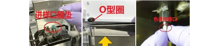主要为进样口漏气造成的,要检查进样口相关连接点:进样口隔垫、衬管O型圈、色谱柱接口。如何进行相关连接点的检查呢?