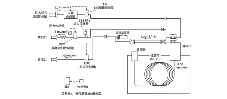 主要为方法参数设定错误造成的,那么将方法参数进行正确设定后,下载到仪器,再将错误复位即可。如何进行方法参数的正确的设定呢?首先我们简单了解一下自动流量控制器的工作原理,以常见的分流/不分流进样口为例: