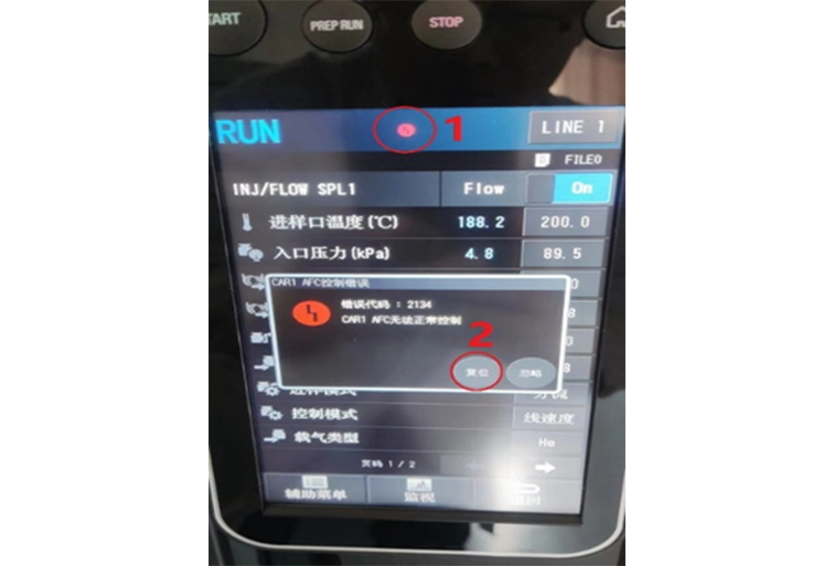 正确设定好方法参数后,下载方法参数到仪器,点击仪器屏幕上方的报错位置1,弹出对话框后,点击复位即可。