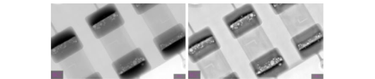 片式电阻的透视图像如图2所示。经过HDR功能处理后,图像中焊料内部的空洞很明显。
