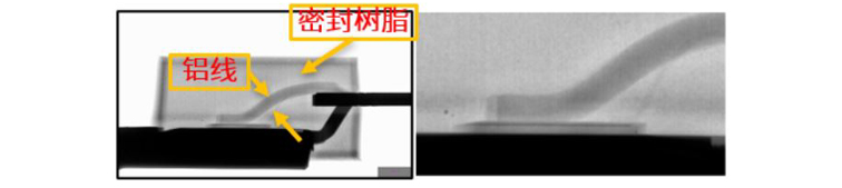 此外,使用铝线的功率IC的透视图如图3所示。周围的密封树脂和铝线由于比重接近,对比度低,原本使用X射线不易观察,但通过HDR处理,清晰可见。