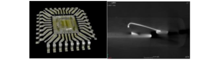图9为QFP封装IC的三维显示图像(左图)和放大的断面图像(右)*1。