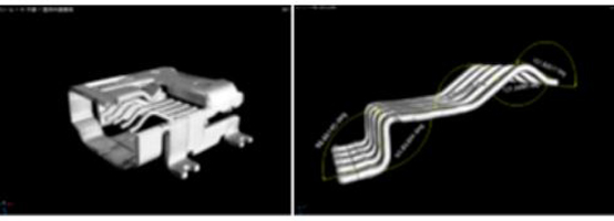图10为USB插头的三维效果图像(左图)和端子的角度测量结果(右图)*1。测量端子弯曲角度,可以将其与设计值进行比较。