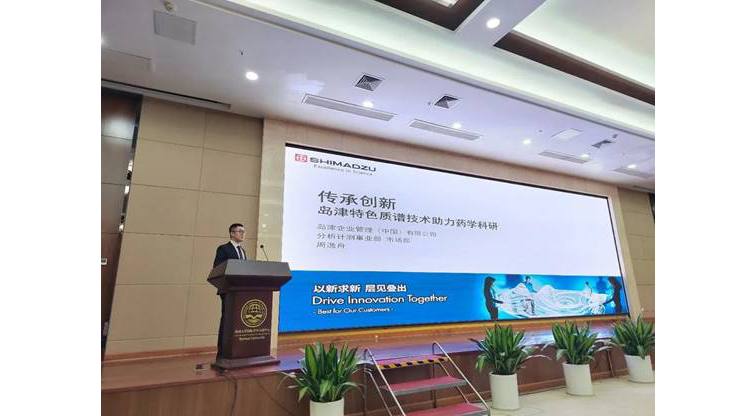 岛津积极参与本次会议,岛津分析计测事业部市场部教育行业周逸舟先生在“药物质量控制与体内过程”分会场发表了《传承创新:岛津质谱技术助力药学科研》的报告。
