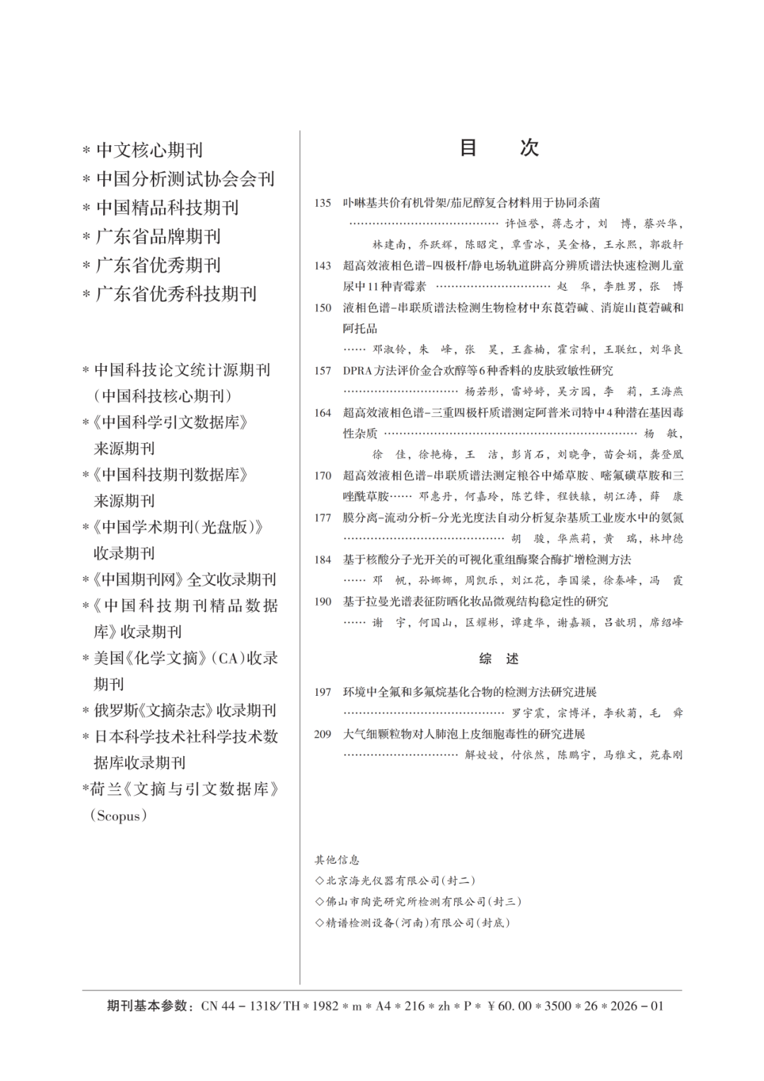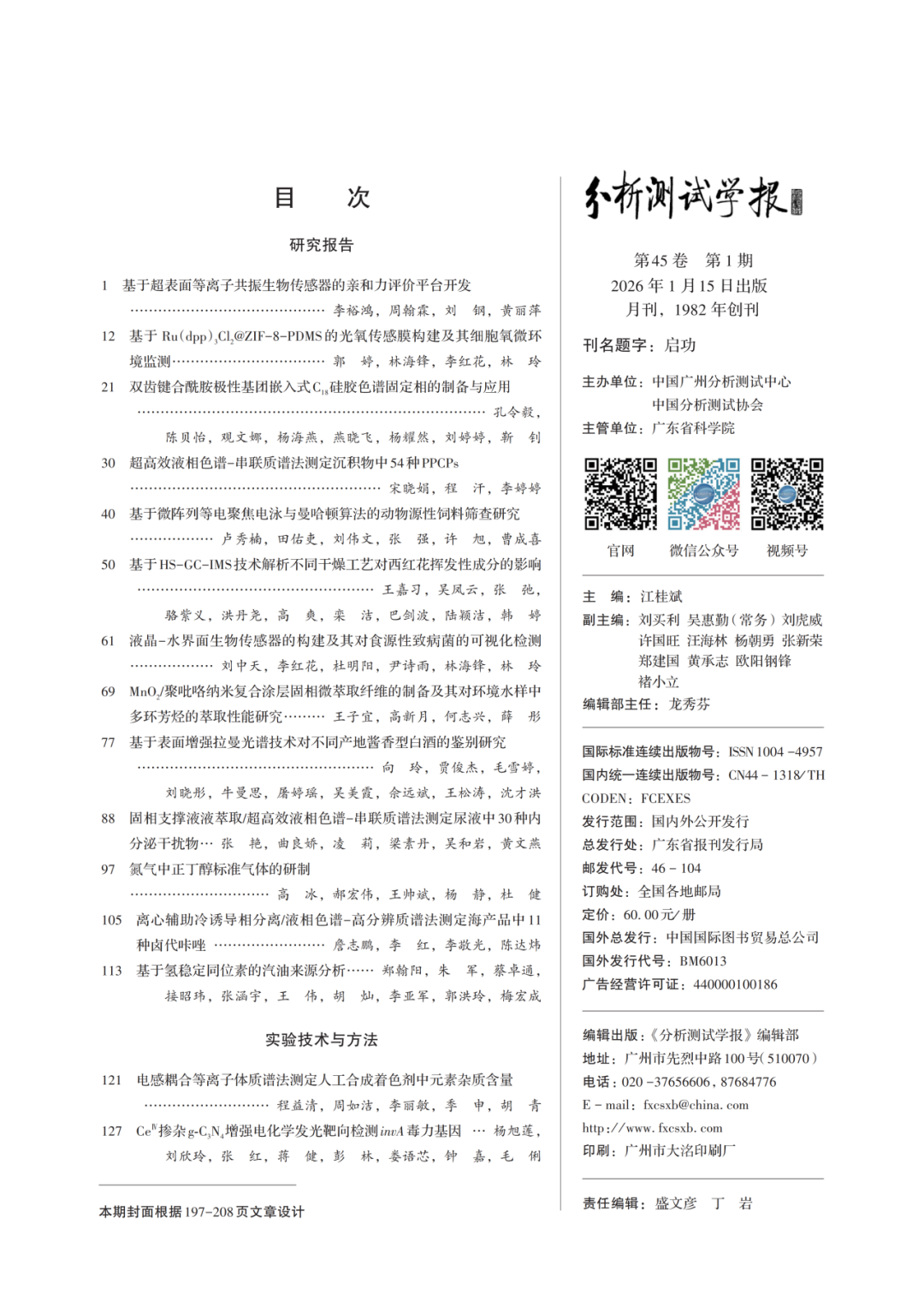 《分析测试学报》2026年1期全文上线!