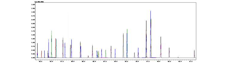 35 个禁用农药混合标准品溶液 TIC 色谱图