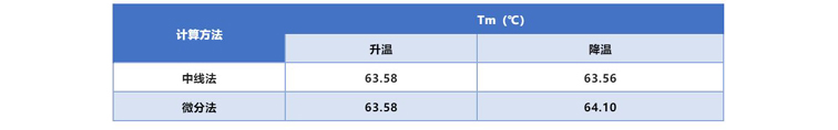 测试完成后,可以通过中线法和微分法两种方法计算Tm值,最终得到的Tm值结果基本一致。
