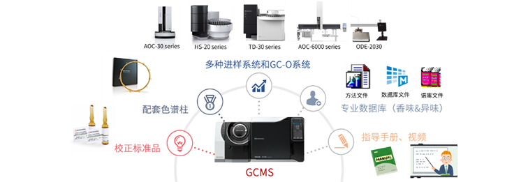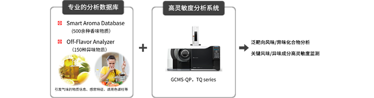 针对包括农产品在内的食品气味分析,岛津推出了特色气味分析系统,高灵敏度GCMS分析系统结合方法包和数据库可以快速方便地建立多种气味化合物的分析方法,同时数据库包含的化合物气味特征信息可以快速锁定引发具体气味的关键化合物,利用内置的标准曲线可以对检出的化合物进行定性和半定量分析。整体操作简单快速且检测灵敏度高,可应用于各种农产品及食品中气味物质的分析。
