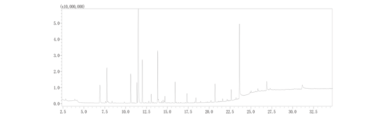 采用岛津 GCMS-TQ8050NX三重四极杆气质联用仪和 AOC-6000三合一自动进样器,结合岛津香味物质数据库,在没有目标组分标准品的情况下,利用数据库自动创建498种气味成分的检测方法,对野生干巴菌中的气味成分进行定性及半定量分析,实验测得野生干巴菌样品中47种气味成分。
