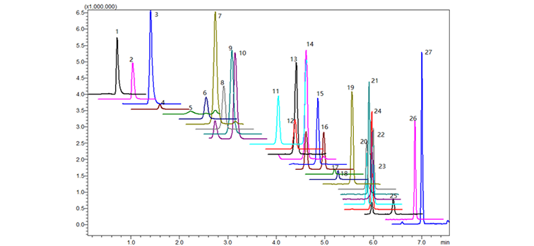 串联质谱同时测定27种激素色谱图