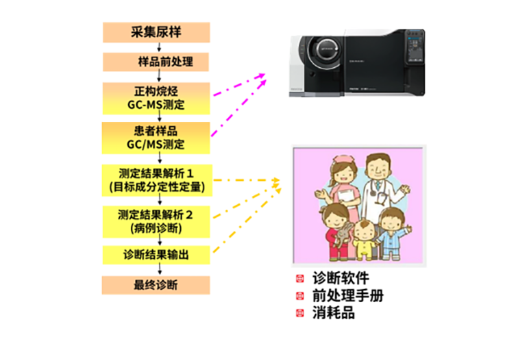 新生儿遗传代谢病筛查作为检品量最大的串联质谱检测项目之一,目前已在全国推广开来。按照相关规定,干血斑初筛阳性的患儿需进行GCMS尿筛二次确证。岛津提供即可使用的血尿同筛方案,血尿同筛均提供完整的前处理操作流程及数据处理软件,可轻松应对血尿同筛。
