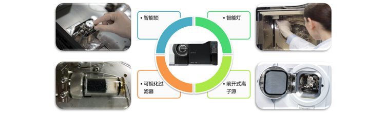l 前开式离子源 前开门设计的离子源使得离子源维护操作变得十分简单,可从仪器前面简单拆装,清洗维护便捷。
