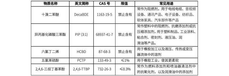 ( 1. 六氯丁二烯、2. 异丙基化磷酸三苯酯、3. 十溴二苯醚)