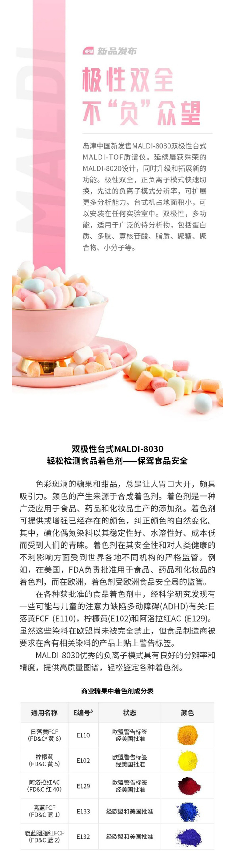 极性双全,不“负”众望丨双极性台式MALDI-8030轻松检测食品着色剂