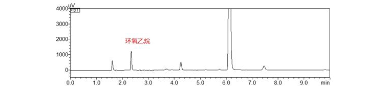4209《药包材环氧乙烷测定法》公示稿中,第一法第二法均采用的是气相色谱法,参考4209色谱条件,环氧乙烷色谱峰良好,色谱图如下:
