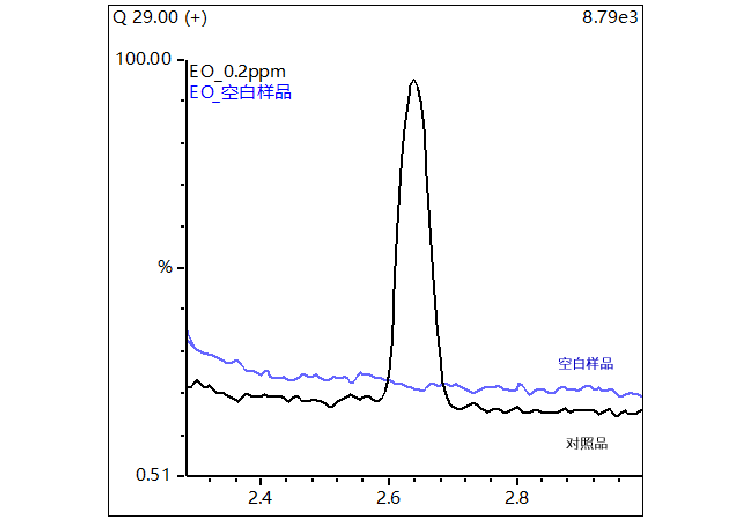 环氧乙烷对照品(0.2 μg/mL)与空白样品(预灌封注射器组合件)对比图
