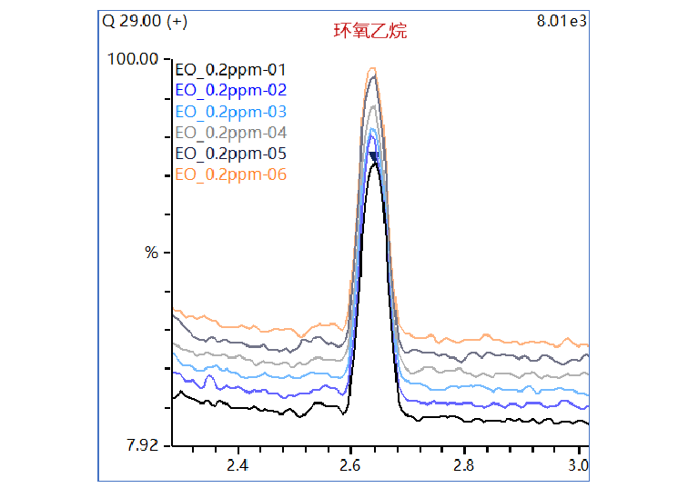 环氧乙烷GCMS谱图对比图(0.2 μg/mL)
