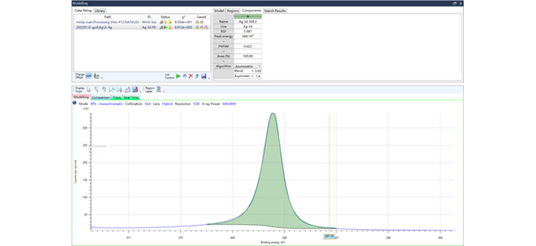 图1. Ag 3d5/2能量分辨率为0.422eV时,灵敏度>300kcps