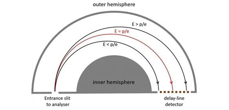 XPS的能量分析器通常采用固定分析器传输(Fixed Analyzer Transmission,FAT)或称恒分析器能量(Constant Analyzer Energy,CAE)模式,待分析的光电子被减速到选定的通能而通过能量分析器,这是光电子在分析器的两个半球之间移动时的平均动能。FAT(CAE)模式的优点是能量分辨率在整个测量的动能范围内保持恒定。