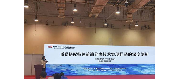 岛津分析计测事业部技术支持团队徐蕾女士发表了题为《质谱搭配特色前端分离技术实现样品的深度剖析》的会议报告。报告中介绍了质谱前端特色技术,包括二维液相、大体积进样、超临界和液相切换等。