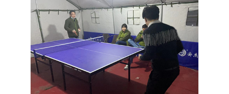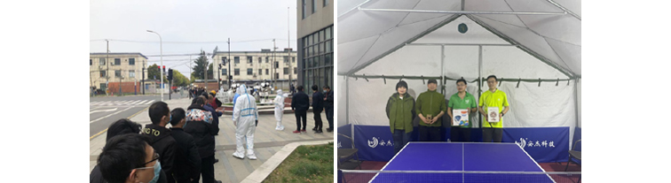 下班后,公司领导带领员工一起进行娱乐活动——乒乓球大赛。同时设立奖项,增加了比赛的竞技性。使员工在封闭状态下实现劳逸结合。
