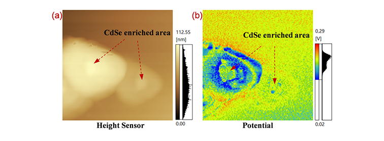 图6. CdSe-MX的原子力显微镜图像和相应的表面电位分布
