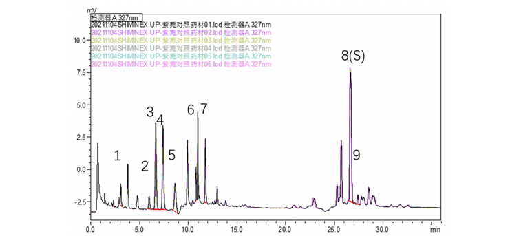 (蜜紫菀配方颗粒特征图谱6次重复性实测图谱)