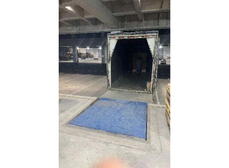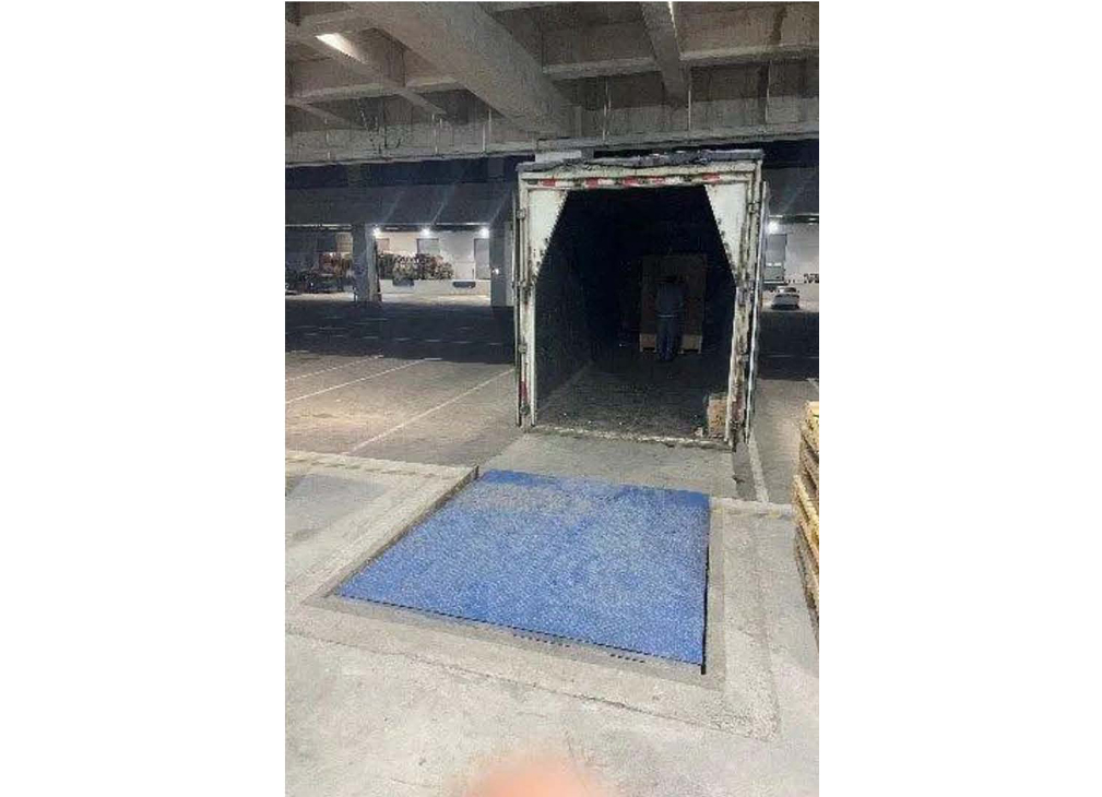 货物到达全封闭的方舱物资集中存放处,开始卸货。