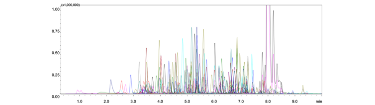 图1. 尿液基质中200种毒品毒物MRM色谱图(加标浓度0.01 mg/L)