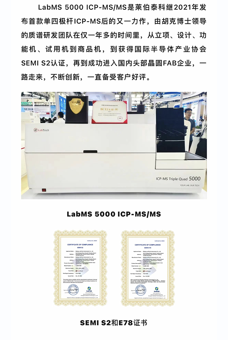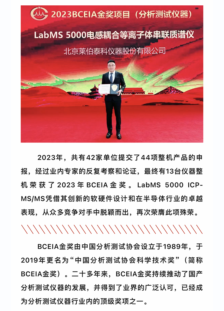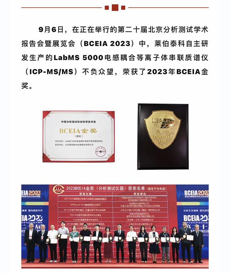 喜讯!莱伯泰科LabMS 5000电感耦合等离子体串联质谱仪荣获2023BCEIA金奖
