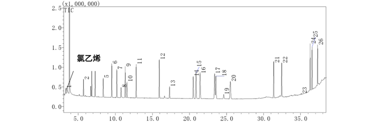 GCMS结合顶空进样同时分析水中26种挥发性有机物(1号峰为氯乙烯)