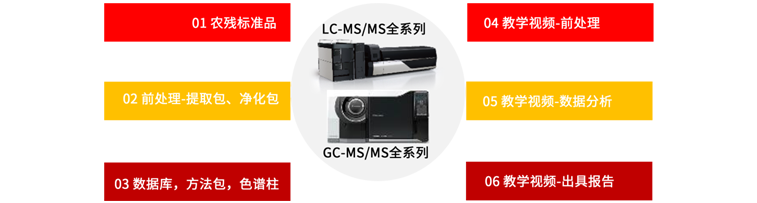 2022年国抽涉及农残共76种农药,检测标准中GB 23200.113(GC-MS/MS)、GB 23200.121(LC-MS/MS)两个标准可以覆盖农残项目的80%以上,除串联质谱外,国抽中也包括一些常用的色谱标准,比如GB 23200.116(GC) 、GB 23200.112(LC)、NY/T 761(GC、LC)等。对于覆盖面很广的双MS标准(GB 23200.113和GB 23200.121),岛津提供从标准品、前处理到仪器分析方法、出具报告等的全套解决方案(见下图)。其中与GC-MS/MS和LC-MS/MS相对应的农残数据库均已包含800余种化合物,数据库随着农药品种的增加也在持续扩展中。