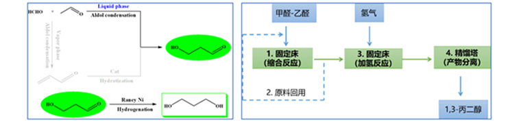 图1. 甲醛-乙醛可控偶联加氢制备1,3-丙二醇
