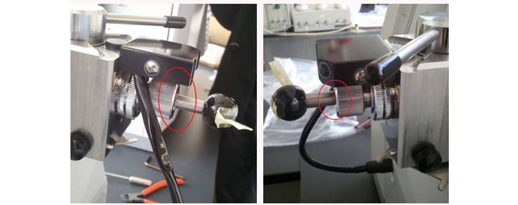 将进样杆工具调整至正确的安装位置,即红线标志处插入到位,拧紧螺丝,此时校正完成。