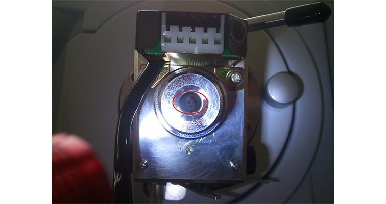 图示:进样杆没有插入到底,线缆接口接触不到位,中间留有空隙。