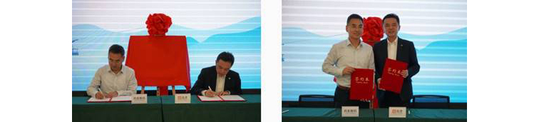 会谈结束,重庆药友董事长刘强和岛津董事长兼总经理青山功基正式进入签约及揭牌仪式。