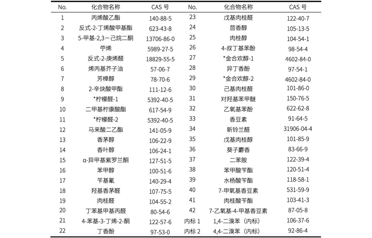 化妆品中香料组分的分析,无需标准品,利用正构烷烃的数据和香料数据库即可创建40种香料组分的分析方法,非常方便的哦!