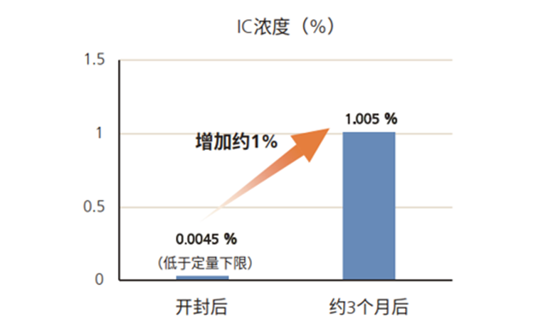 由上图可见,刚刚开封的样品几乎不含无机碳(IC),样品在大气环境中静置约3个月后吸收了空气中的二氧化碳,IC浓度增加至约1%。使用TOC-L固体样品测定系统,可定量确认水泥等样品中碳酸盐含量随时间的变化,为研究水泥产品改良和材料开发提供依据。