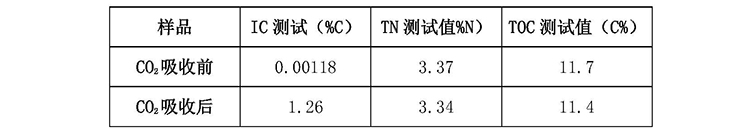 吸收CO2 气体前后的胺类溶液IC、TN(总氮)、TOC测定结果如下表所示(各测定值是经稀释倍数校正后的值)。