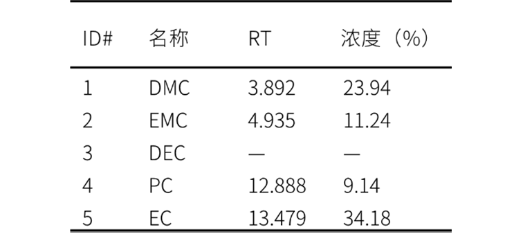 本例采用GC-FID对已知电解质溶剂进行常规定量检测。