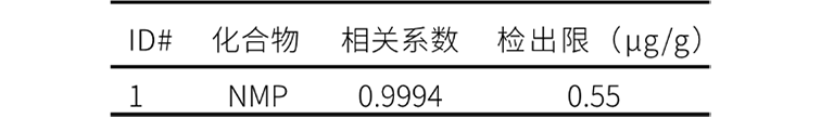 本例采用岛津HS-20 NX顶空进样器结合Nexis GC-2030气相色谱仪,建立了电池电极片中NMP残留量的检测方法,标准曲线良好、灵敏度高。