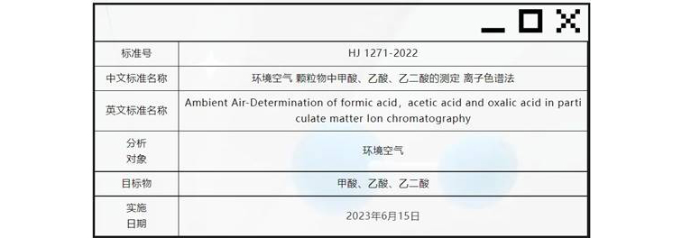 色谱检测新标准来啦——HJ 1271-2022 环境空气 颗粒物中甲酸、乙酸、乙二酸的测定 离子色谱法