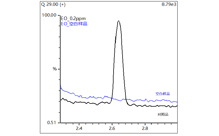 环氧乙烷对照品(0.2 μg/mL)与空白样品(预灌封注射器组合件)对比图