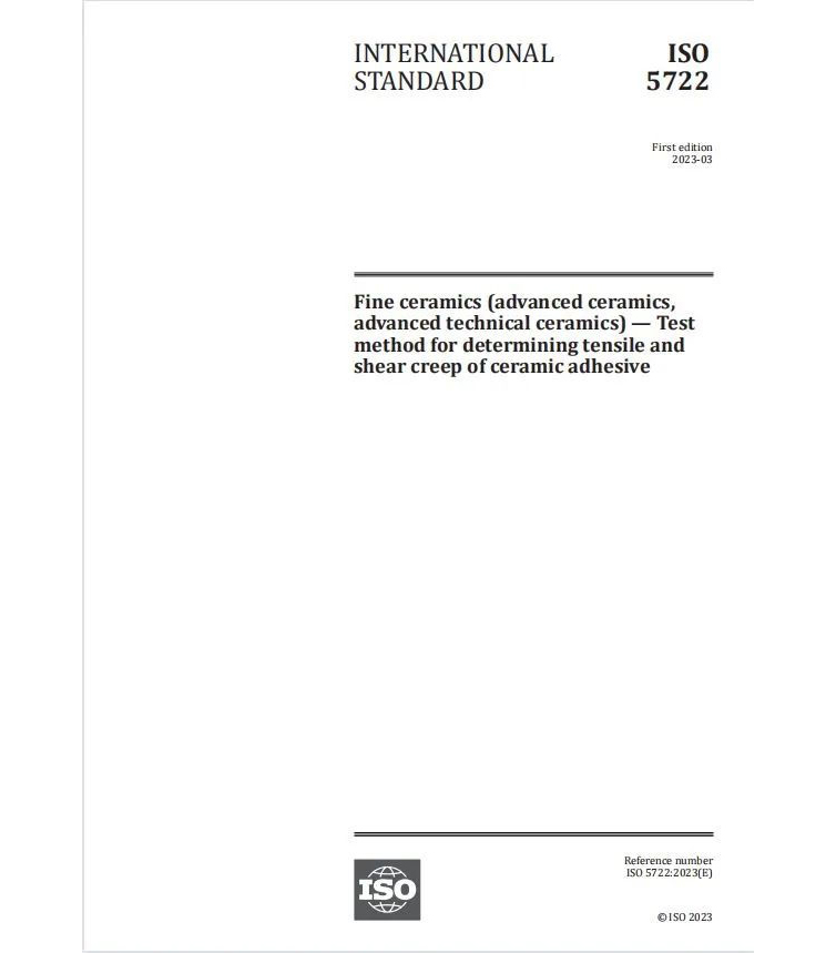近日,由国检集团主导制定的国际标准ISO 5722:2023 Fine ceramics (advanced ceramics,advanced technical ceramics)—Test method for determining tensile and shear creep of ceramic adhesive,中文名称《精细陶瓷 (高性能陶瓷,高技术陶瓷)-陶瓷粘结剂拉伸和剪切蠕变试验方法》正式发布,这是国检集团主导并成功发布的第14项国际标准。